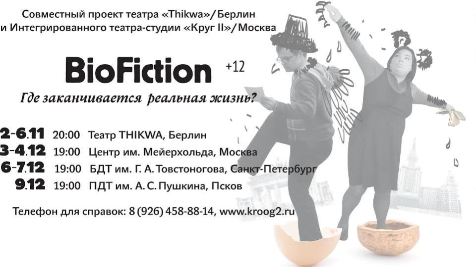 Насколько выдуманные истории отражают существующую реальность? Могут ли они отражать действительность острее, чем реальные? На эти вопросы пробуют найти ответы актеры с особенностями ментального развития в совместном российско-германском проекте «Biofiction. Где заканчивается реальная жизнь?». В спектакле будут задействованы четыре актрисы из России и четыре актера из Германии.